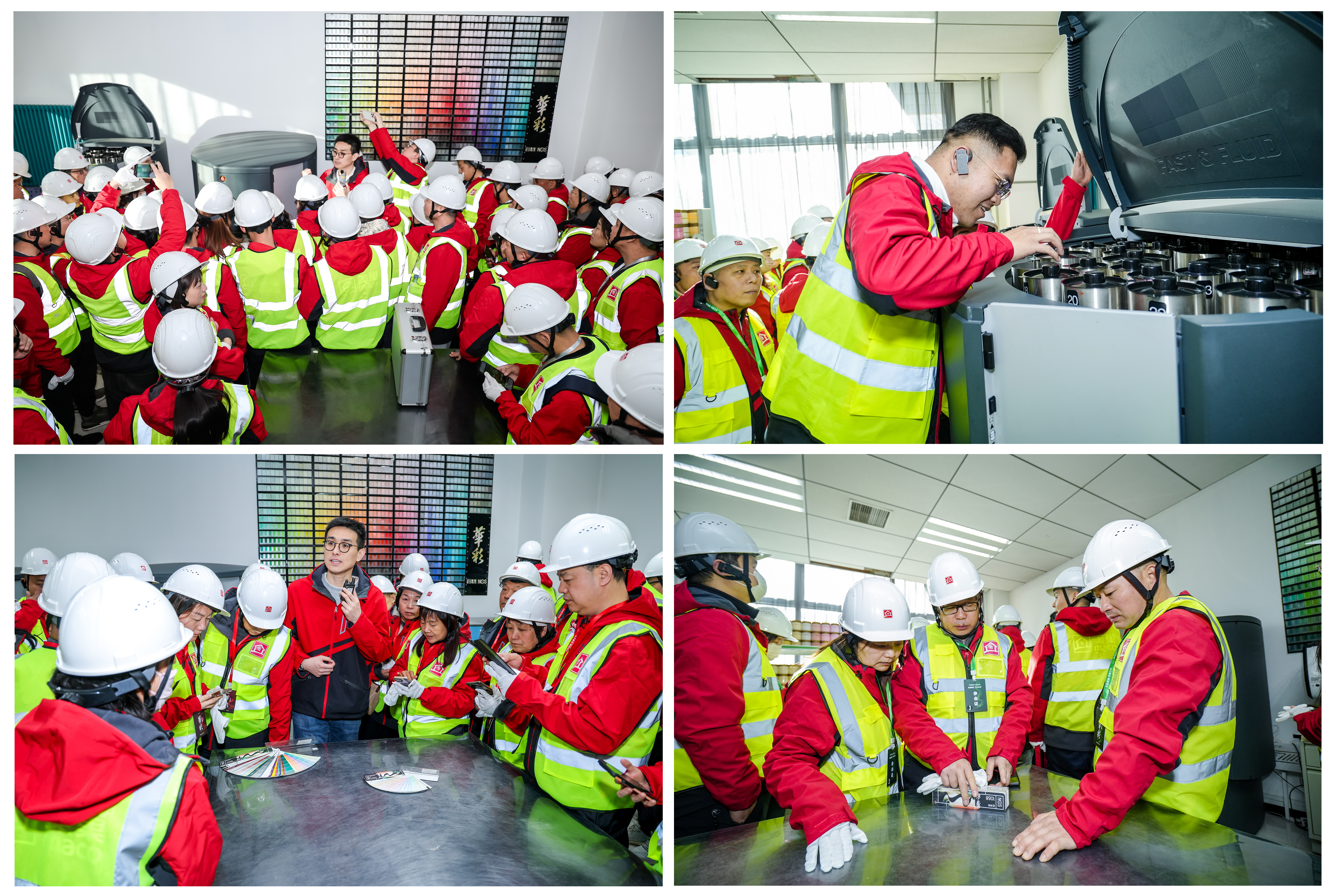 隨后,經銷商一行走進環(huán)境與氣味評價實驗室、恒溫恒濕實驗室、VOC 釋放測試環(huán)境艙、化學分析實驗室以及重金屬檢測平臺等功能區(qū)域,全面了解華彩漆從原料、配方到成品出廠的“全鏈路檢測”體系。嚴苛的實驗條件與標準化的測試流程,讓大家對華彩在環(huán)保、安全維度上的“高標準、自我加碼”有了更直觀的認知。