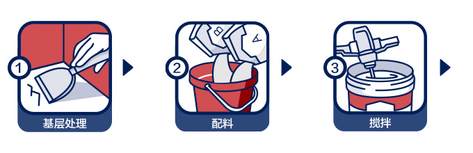 | 理論消耗量: | 地面每平方米(干膜厚度1.5mm)理論消耗量約2.9kg,實際消耗量因基層平整度和施工方法略有不同。 |